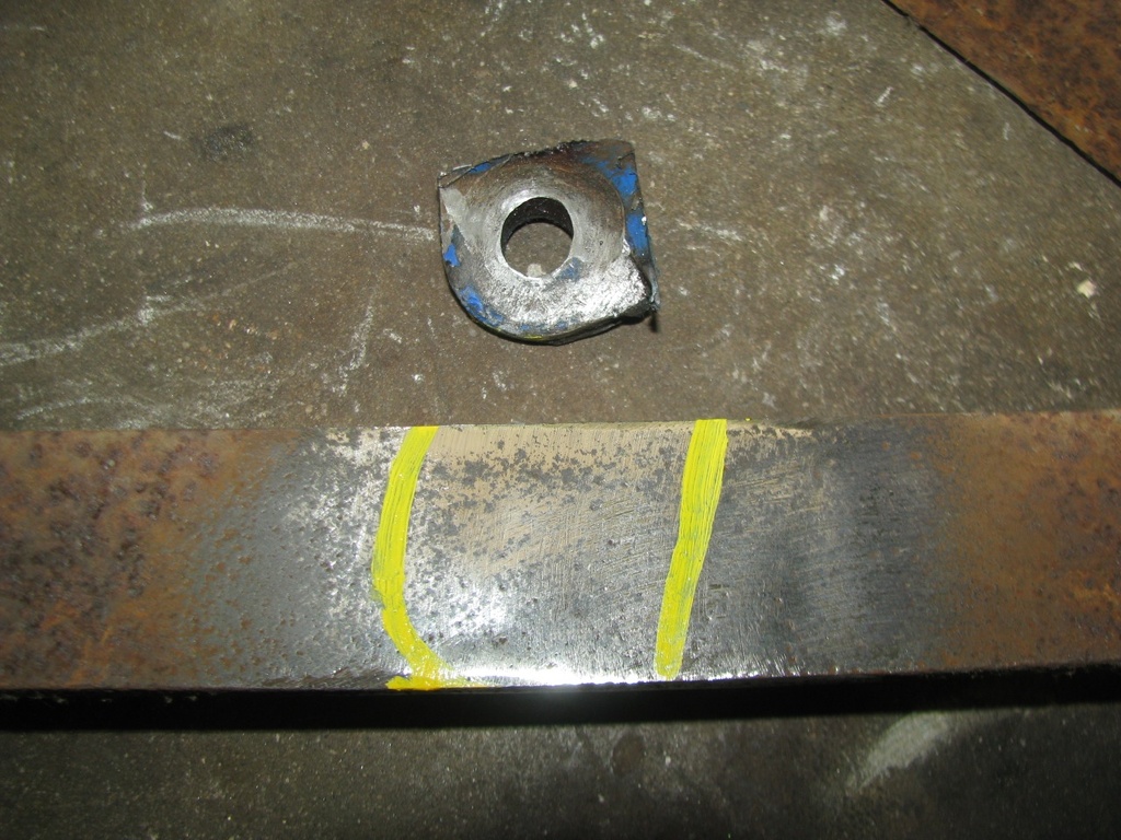 Now roughly lay it out on some well-aged 1/4″ stock (this steel is at least sixty years old, it used to be a shelf support my great-grandfather built).